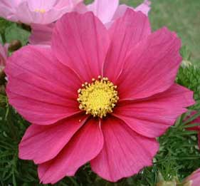 日本中どこに行っても見られる馴染み深い秋の花です。秋にサクラのような花が咲くという意味で「秋桜」ともいわれています。品種改良が進み、花色は赤、桃、白、黄など、花形は八重、丁字、筒状の舌状花など、高性、矮性など多彩です。短日植物ですが、早生系は日長に関係なく播種後50〜70日で開花するので、いつでも花を楽しめます。