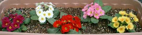コーカサス原産の小型のジュリ エ種と改良の進んだ大輪のポリアンサと の交配で育成された園芸種です。花色は赤、ピンク、黄、紫、白など多彩です。 草丈は約20cm、花がらをこまめに摘み取り、 月に2〜3回液肥を与え、株を疲れさせないように注意します。