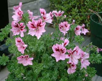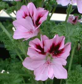 ゼラニウムと同じ属の植物ですが、本種は一季咲き性です。 ゼラニウムより花はやや大型で、花色は豊富ですが、逆に鮮明さに欠けるようにも見えます。 また、花の上部の二弁には暗色の斑紋があるのが特色です。
